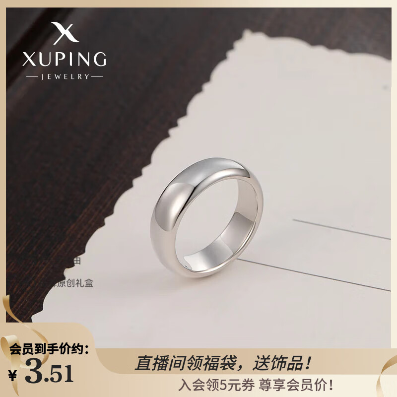 包邮 XUPING旭平首饰气质时尚素圈戒指情侣小众ins风日常通勤简约送女朋友礼物 素圈戒指【7码-窄版约2mm】